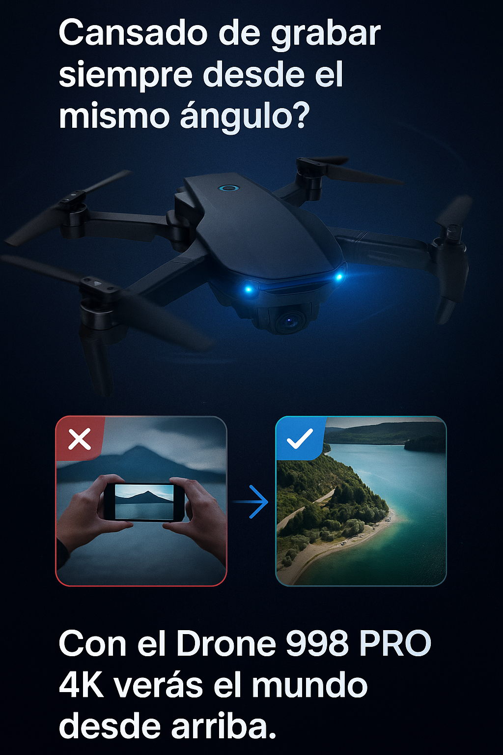 Drone 998 PRO sobrevolando playa en Chile